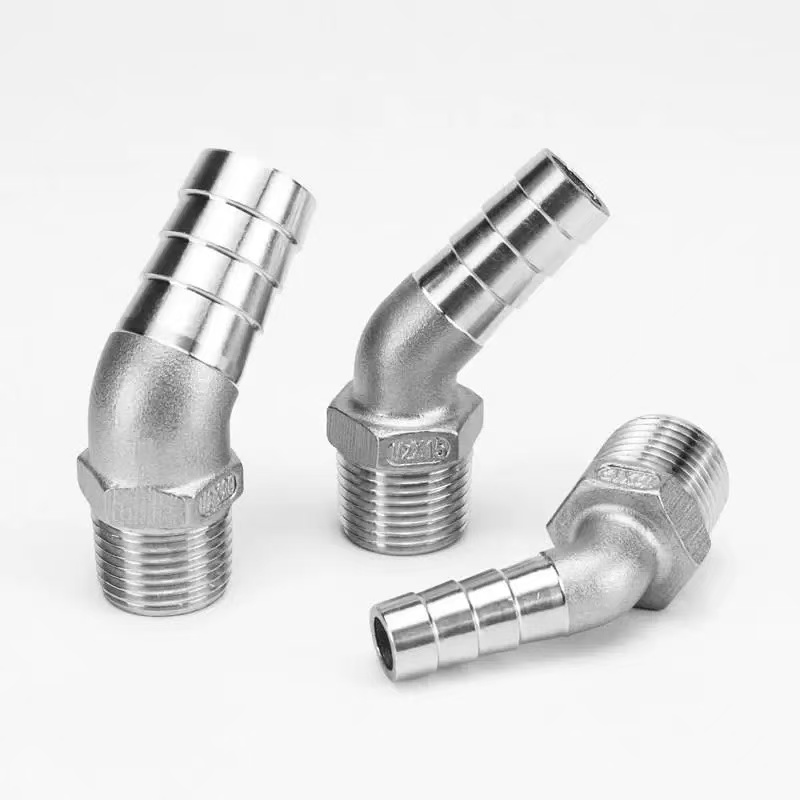 Capăt ghimpat: Acest capăt are o structură ghimpată cu mai multe inele, cu unghiuri și adâncimi optimizate ale dinților. Odată ce un furtun flexibil este introdus, barbele se încorporează în peretele interior al furtunului pentru a crea o prindere mecanică în mai multe puncte. Atunci când este fixat cu o clemă de furtun din oțel inoxidabil, ansamblul atinge o rezistență la smulgere care depășește 50 kg. Capătul ghimpat este disponibil într-o gamă cuprinzătoare de dimensiuni, compatibil cu diferite furtunuri flexibile, cu diametrul interior de la 3 mm la 25 mm.